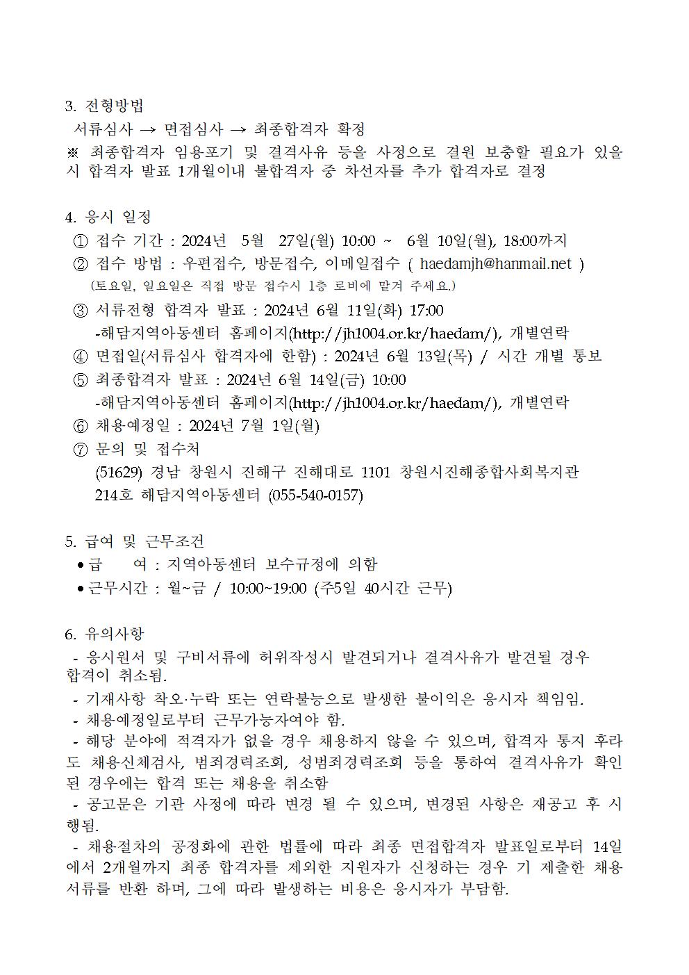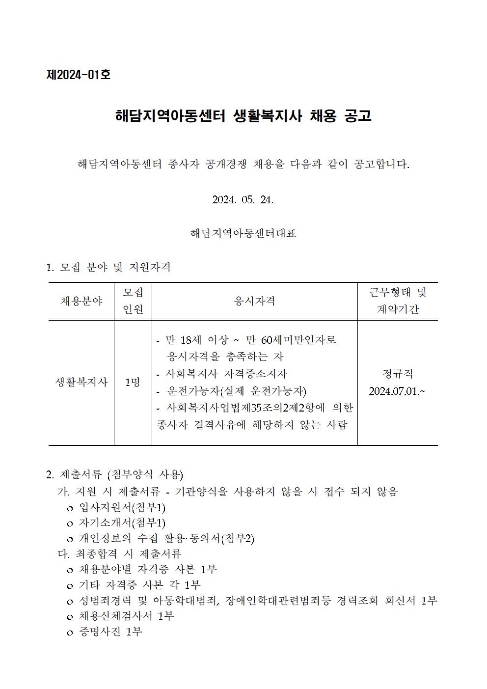 [채용공고] 제2024-01호_해담지역아동센터 생활복지사 채용